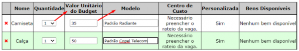 b. Valor unitário de budget - Valor máximo que pode ser gasto neste item.