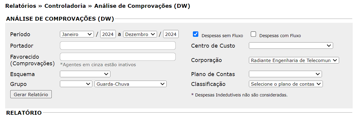 A tela de Análise de Comprovações oferece uma visão detalhada dos valores de despesas comprovadas pelos colaboradores, organizadas por classificação financeira. Essa funcionalidade permite identificar padrões de gasto e contribui para uma gestão financeira mais eficiente.
