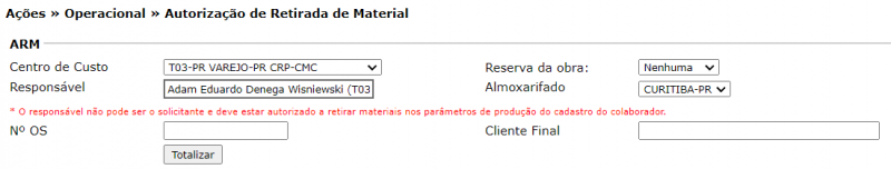1. Funcionalidade - ARM é o documento que permite ao responsável (colaborador encarregado) indicado na ARM retirar do estoque os materiais para aplicação em obra.