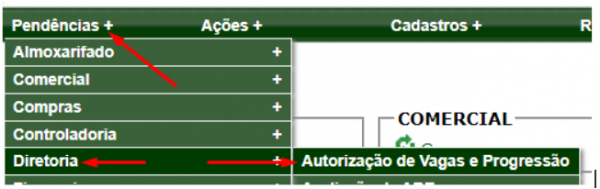 1. Local - Pendência > Diretoria > Autorização de Vaga e Progressão.