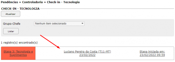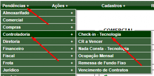 1. Local - Pendências > Logística > Check-in Tecnologia