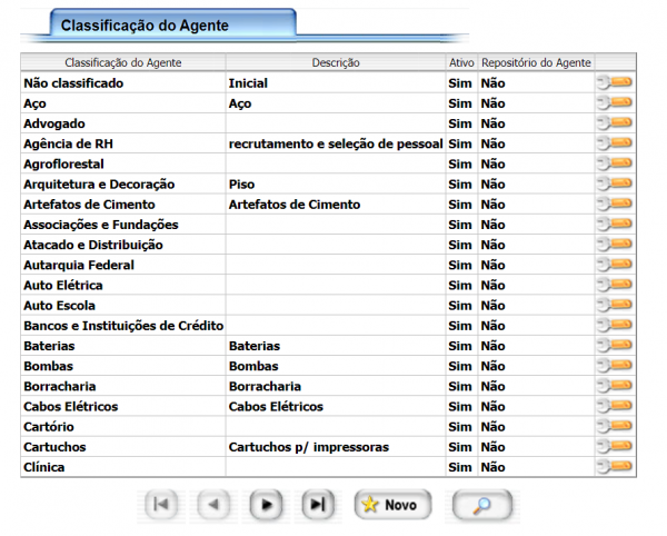 Essa tela serve para classificar os agentes em relação ao que eles representam. Exemplo: Transportadora, Poder Público, etc.