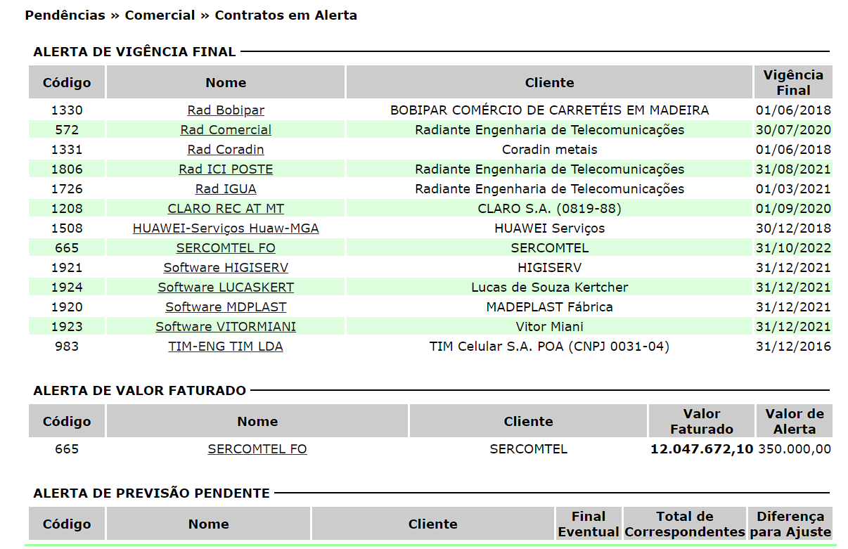 Nesta tela você consegue visualizar os contratos que estão próximos da vigência final.