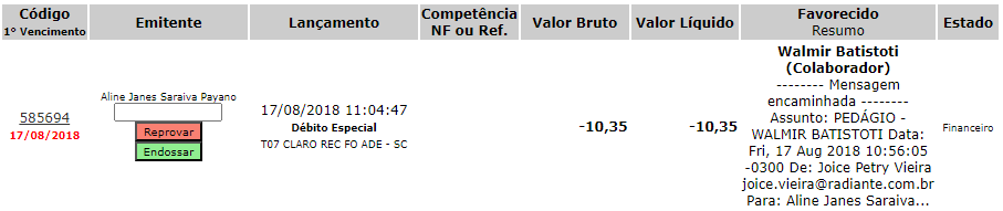 Após fazer a busca, encontre a requisição desejada. A requisição pode ser reprovada ou endossada.