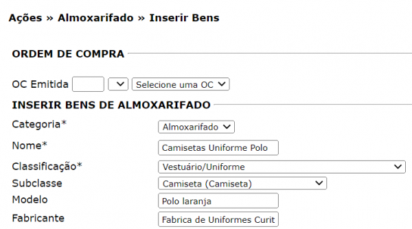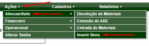 Inserir Bens de Almoxarifado - Funcionalidade para acrescentar em estoque bens com finalidade operacional (EPI/EPC, Equipamentos e Máquinas, Ferramentas, Vestuário).