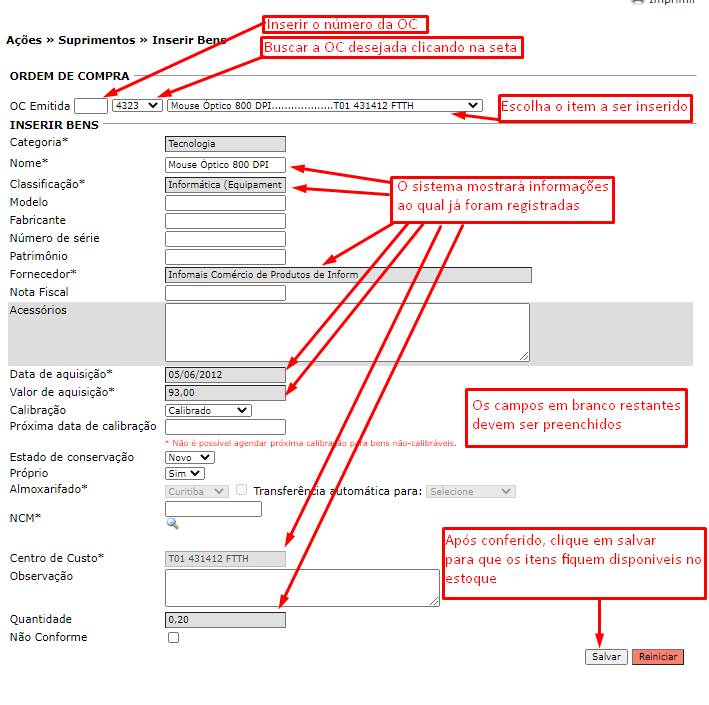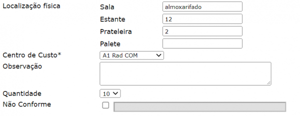 Não Conforme - Este campo só é usado caso no momento da recepção do item haja alguma inconformidade.