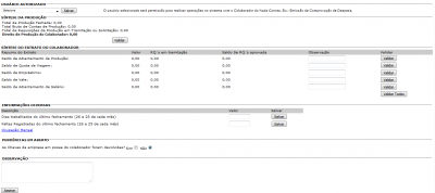 Nesta tela o responsável elencado pelo RH para circular o Nada Consta, poderá selecionar alguém de sua base ou área para lhe auxiliar nos tramites deste colaborador caso seja necessário. Isso deve ser feito colaborar a colaborador que o nada consta vir para a sua área. Caso o gestor da área não queira ficar fazendo esta atividade, favor ajustar com o RH para que este proceda já o direcionamento a pessoa que ficará responsável pela atividade. Nesta tela também trará a “Síntese da Produção” a qual deverá ser validado. Quer dizer que não haverá mais lançamentos ou produções a serem fechadas. Apresenta a “Síntese do Extrato” em relação aos valores da Conta Corrente do colaborador. Trás o saldo de cada classificação especial, O valor de RQ´s por classificação que esteja em tramitação e o Saldo de como ficará as RQ´s se as que estão em tramitação forem aprovadas até o final. A coluna observação tem por objetivo fazer uma explanação orientando a respeito do saldo de cada classificação. Já a coluna Validar, na chefia imediata tem por objetivo que o gestor valide aqueles saldos ( algo do tipo! É isso mesmo e não tem mais comprovações de quota de viagem por exemplo). Valido, fechou as transações que envolve a chefia imediata nesta área. Não terá mais como entrar com RQ´s. Se tiver que fazer alguma RQ não importa a finalidade faça antes de validar! Depois não tem mais como! A não ser somente após tudo feito e reaberto pelo RH no estagio de fechamento final que será tratado mais a frente.