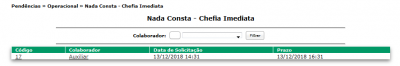 Ao clicar sobre o nome do colaborador ou código, abrirá apara a chefia imediata a seguinte tela: