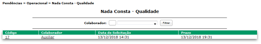 Ao clicar sobre o nome do colaborador ou código, abrirá a para a qualidade a seguinte tela: