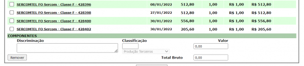 Produções Fechadas Versus Pagamentos de Produção: selecione o serviço discriminado (resumo do componente)