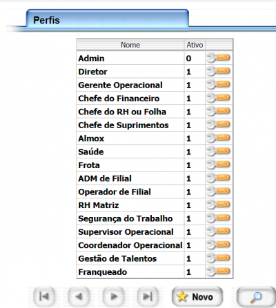 Nesta tela você consegue visualizar e editar os tipos de perfis de acesso.