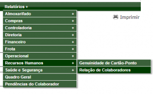 2. Local - Relatório > Recursos Humanos > Relação de colaboradores.