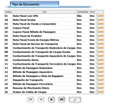 Nesta tela você consegue visualizar, pesquisar e editar os tipos de documentos.